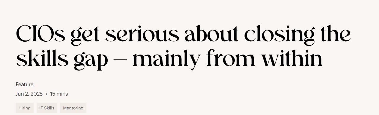 Quoted in “CIOs Get Serious About Closing the Skills Gap” for insights on AI-driven upskilling, innovation strategy, and building future-ready tech teams